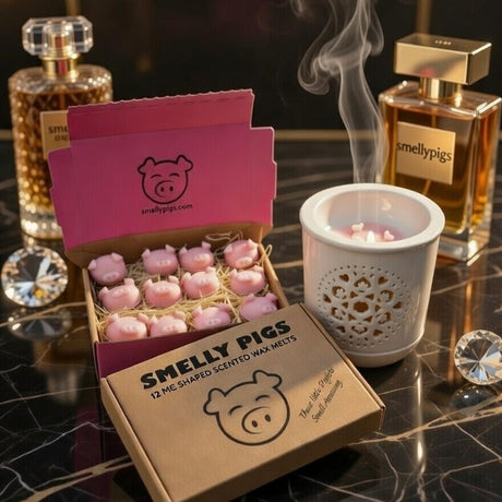 Smelly Pigs® wax melts are lovingly handmade in small batches in the UK using 100% environmentally friendly and sustainable vegan natural wax and the very best vegan & paraben free fragrances. Each batch is then inspected and thoroughly tested in a range of wax warmers and in different room setups to ensure we only sell the best wax melts possible. Every order is individually hand picked and packed prior to dispatch.