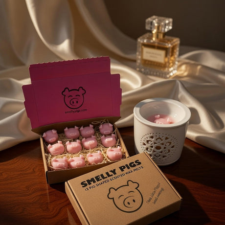 Smelly Pigs® wax melts are lovingly handmade in small batches in the UK using 100% environmentally friendly and sustainable vegan natural wax and the very best vegan & paraben free fragrances. Each batch is then inspected and thoroughly tested in a range of wax warmers and in different room setups to ensure we only sell the best wax melts possible. Every order is individually hand picked and packed prior to dispatch.